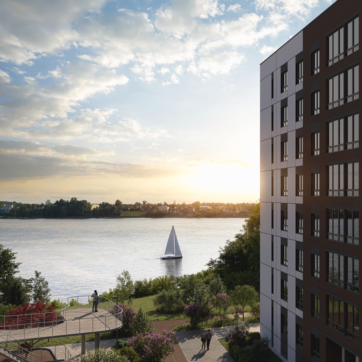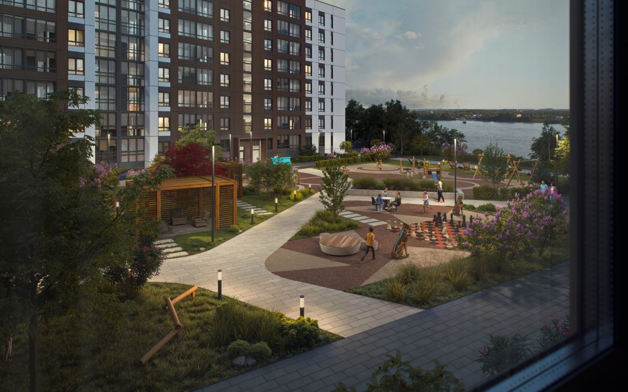 Проект предусматривает собственную благоустроенную набережную Невы, где можно проводить уютные вечера с семьёй и близкими.