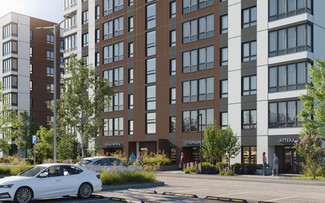 На территории комплекса будет предусмотрено 20 коммерческих помещений, где в будущем откроются магазины, аптеки, кафе и салоны красоты.